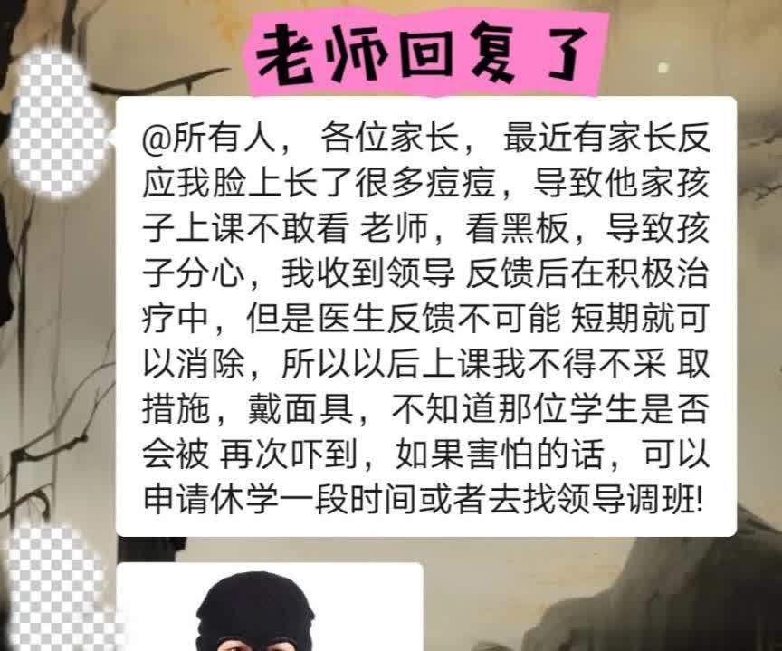 家长指责老师长痘吓到孩子,老师戴头套上课引4k点赞