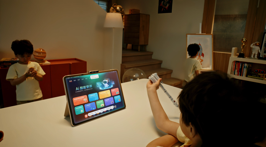 T系列学习机上的创新设计使小思由屏内非常驻变为硬件上常驻,更好地承接全局copilot角色。学习机配备了性能更优的摄像头和中间的小屏幕,作为小思的载体,在任何场景下都可以便捷唤醒。