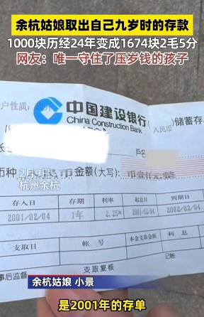 杭州姑娘翻出9岁时的存单,1000元存了24年!如今连本带利取出…